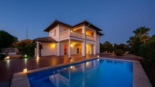 La villa, orientada al suroeste, se renovó en profundidad en 2024 con materiales elegantes y de alta calidad. Se extiende en 2 niveles y ofrece un amplio salón-comedor con cocina americana, 6 dormitorios y 6 cuartos de baño. Los tres dormitorios de la planta baja están adaptados para sillas de ruedas. Un garaje doble y una cochera ofrecen espacio para un total de cuatro vehículos adicionales.