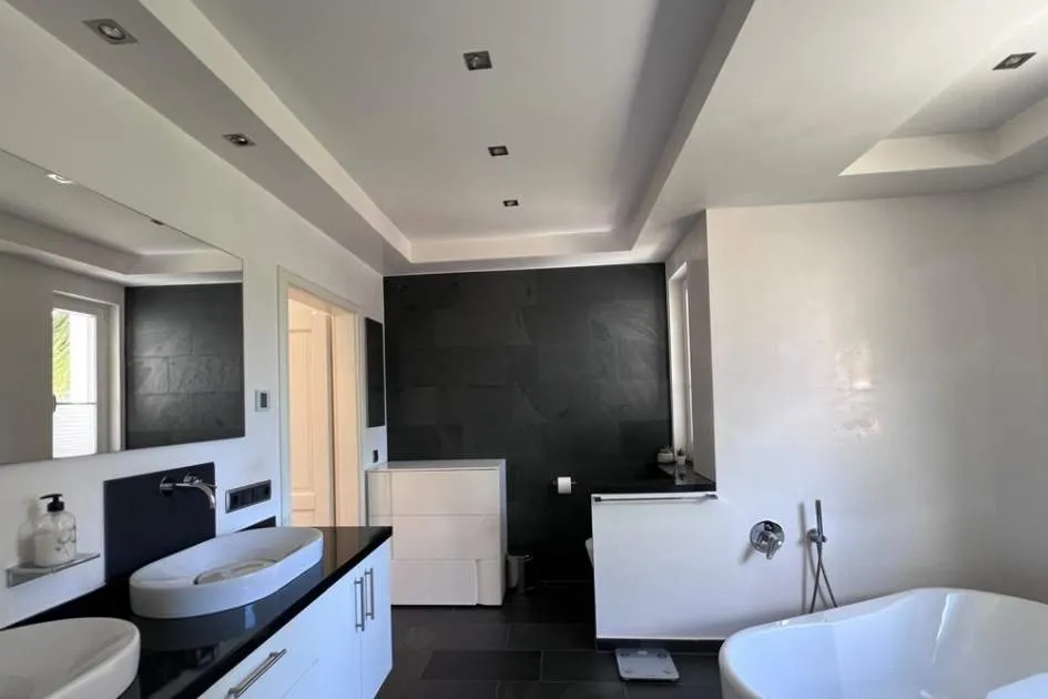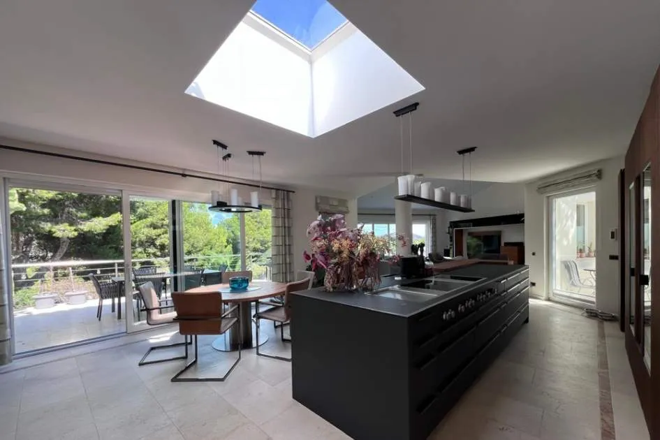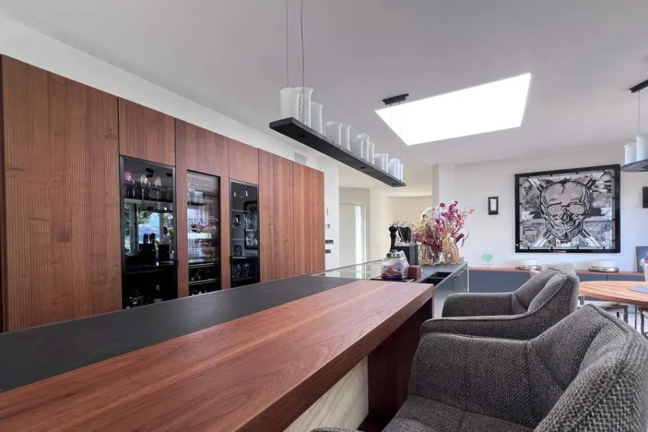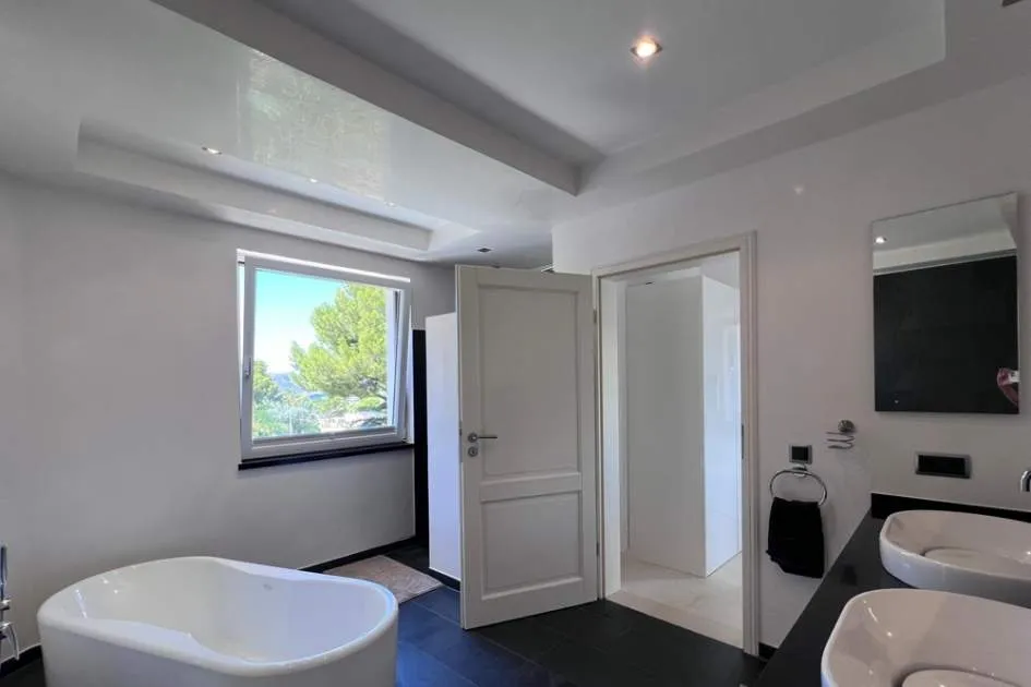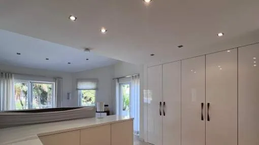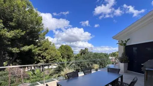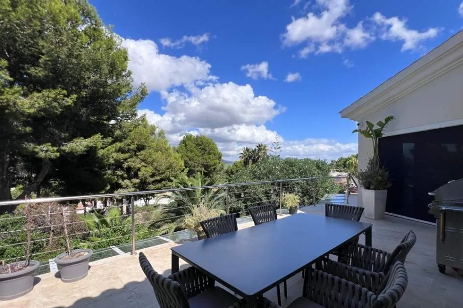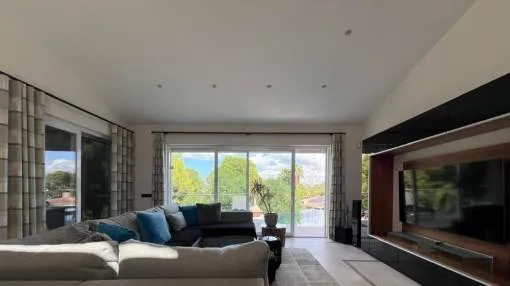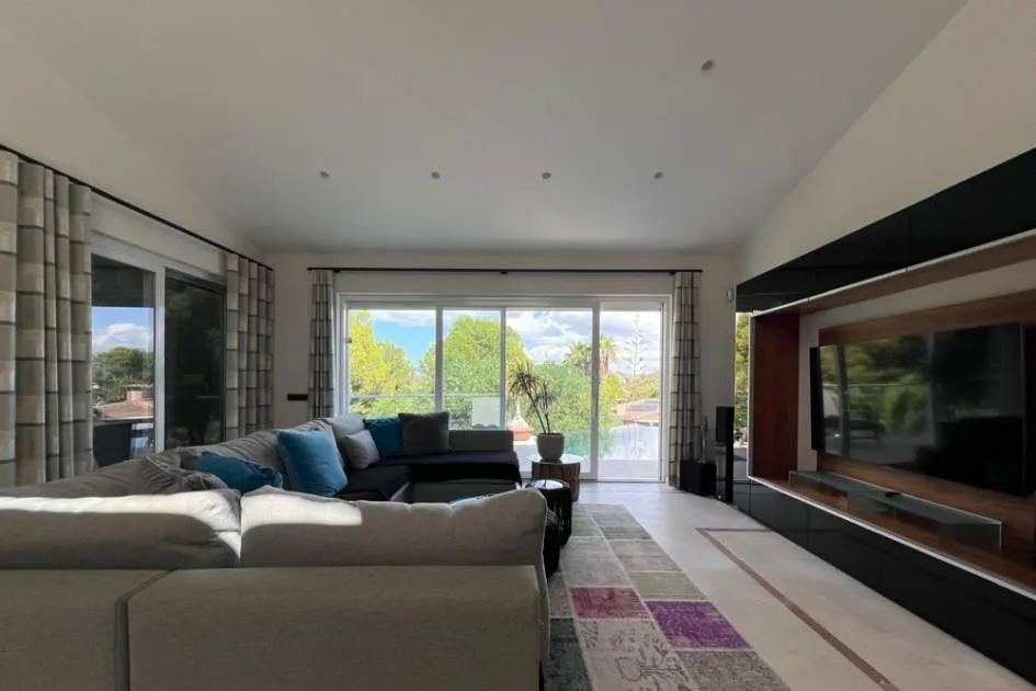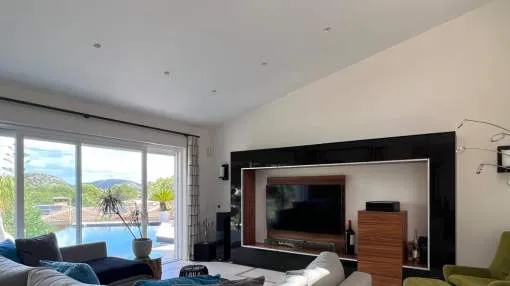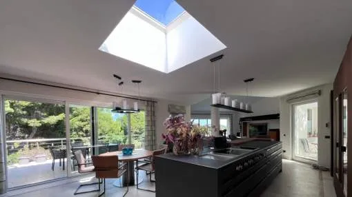 Esta elegante villa de lujo completamente renovada se encuentra en la prestigiosa zona residencial de Nova Santa Ponsa en la zona suroeste de Mallorca con un diseño moderno y acabados de alta calidad la propiedad combina confort amplitud y estilo mediterráneo.
