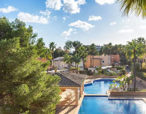 Este exclusivo ático se encuentra un lujoso complejo residencial que consta de tres bloques de apartamentos y diez chalets. El complejo cuenta con una maravillosa zona de piscina, un aparcamiento subterráneo, plazas de aparcamiento al aire libre y una casa de barbacoa. Se sitúa a pocos minutos de Port Adriano y linda directamente con el campo de golf Santa Ponsa III. A pesar de la tranquila ubicación, tien buen acceso a la infraestructura del suroeste de la isla. Campos de golf de renombre, puertos deportivos exclusivos, playas pintorescas y clubes de playa de moda están a poca distancia. A Palma y al aeropuerto se tarda 25 – 30 minutos en coche.