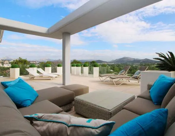Este moderno ático se sitúa a poca distancia del centro con una amplia playa de arena, una amplia variedad de restaurantes, tiendas, bancos, centros médicos y proveedores de servicios. El complejo consta de 4 edificios con un total de 40 viviendas, cuyos propietarios tienen acceso a una terraza comunitaria con piscina, una zona ajardinada y plazas de aparcamiento. En las inmediaciones se encuentran los campos de golf de Santa Ponsa y dos puertos deportivos. El apartamento cuenta con un moderno y exclusivo diseño interior y una máxima calidad de acabados. Consta de un salón-comedor con chimenea y cocina abierta, un lavadero y dos dormitorios, cada uno con baño en suite y vestidor. Además, hay una terraza cubierta, que se puede cerrar completamente mediante elementos de cristal sin marco, más una preciosa terraza solárium de 120 m² con magníficas vistas panorámicas. Una plaza de aparcamiento y un trastero en el edificio están incluidos en el precio de compra.