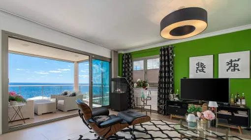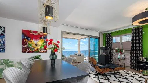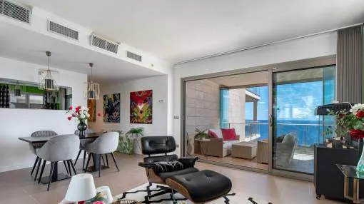 El piso goza de unas vistas incomparables al mar abierto y de un equipamiento de alta calidad. La pieza central de la propiedad es la amplia terraza, que parece una sala de estar al aire libre.