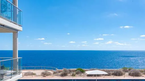 En una ubicación absolutamente privilegiada, directamente en la costa de Cala Figuera, le espera este exclusivo piso en un complejo residencial muy cuidado en primera línea de mar. El encantador puerto de Cala Figuera se encuentra a pocos minutos a pie y confiere al entorno un encanto especial.