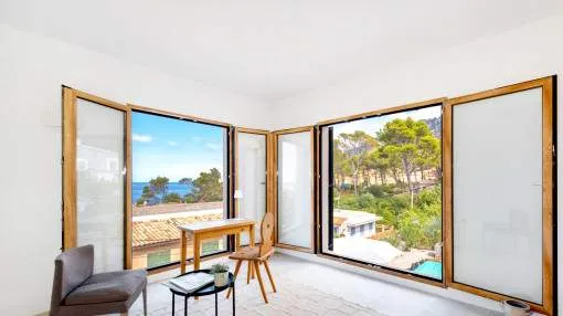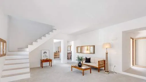 Esta propiedad, construida en 1970 y recientemente renovada (2025) en perfecto estilo minimalista y a la vez conservando su carácter mallorquín.