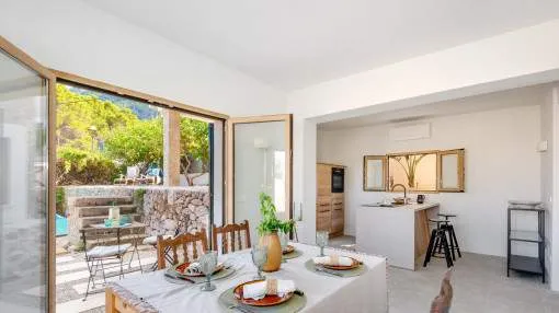 Esta preciosa propiedad es ideal para aquellos que buscan estilo de vida lujoso y a la vez poder disfrutar desde casa la belleza de naturaleza pura, rodeada con algunas rutas de senderismo más preciosas de la isla, en el parque natural de la Sierra de Tramontana.