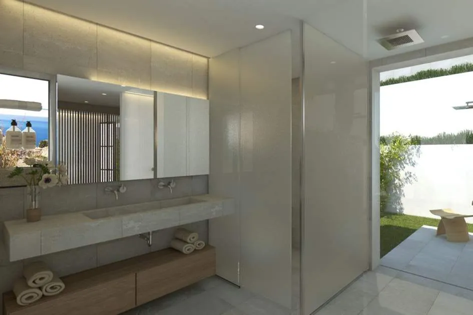 La villa dispone en 2 niveles de 3 dormitorios, cada uno con baño en suite y uno de ellos en un independiente apartamento para invitados. La propiedad cuenta con aire acondicionado (frío / calor), calefacción por suelo radiante y un dormitorio principal con vestidor y acceso a un acogedor patio con ducha exterior.