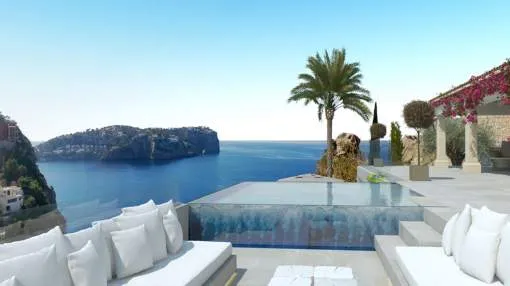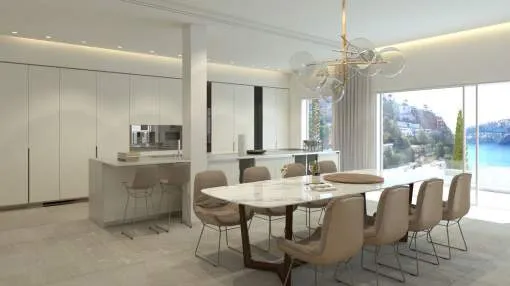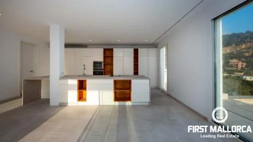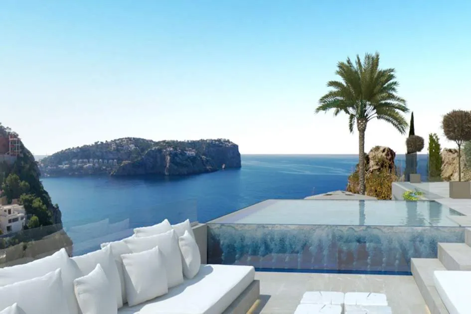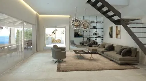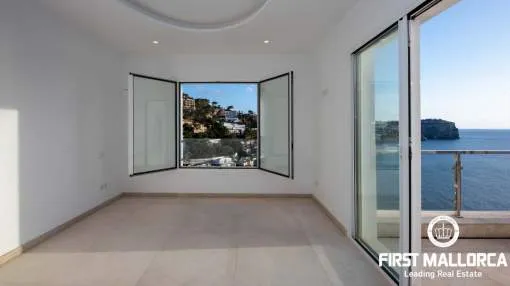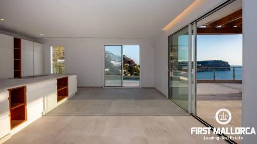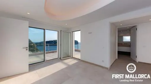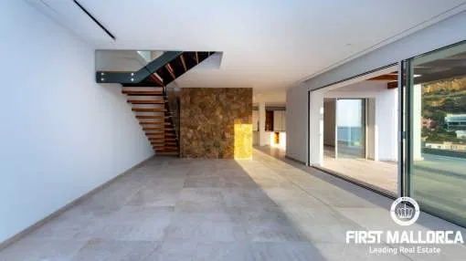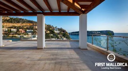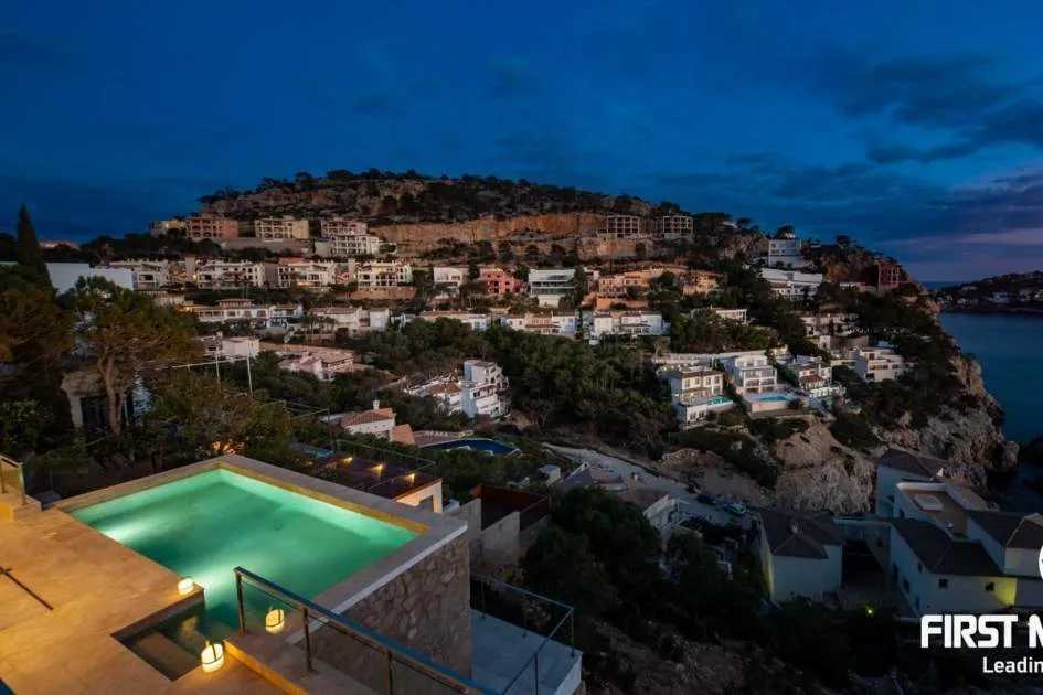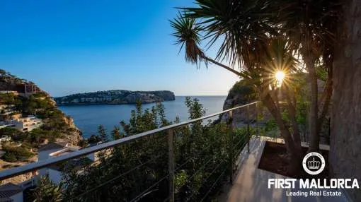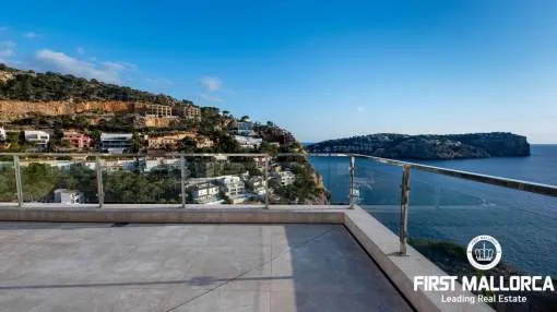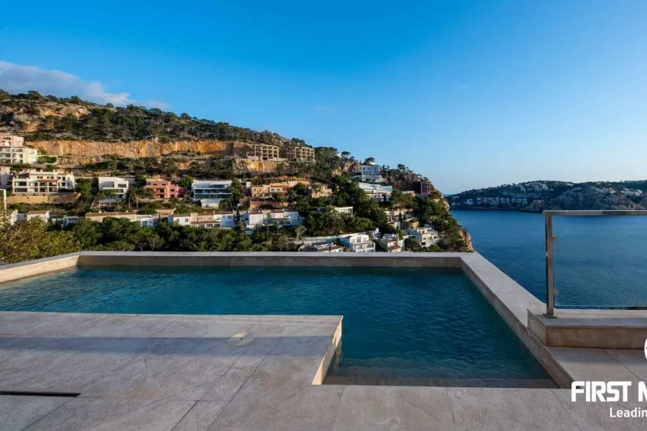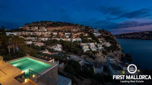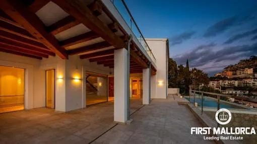 Esta villa de nueva construcción en Puerto de Andratx se encuentra en una ubicación muy privilegiada y tranquila en la Cala Moragues. Gracias a su orientación sur, la propiedad goza de mucho sol durante todo el día y de fantásticas vistas a la entrada del puerto y el mar.