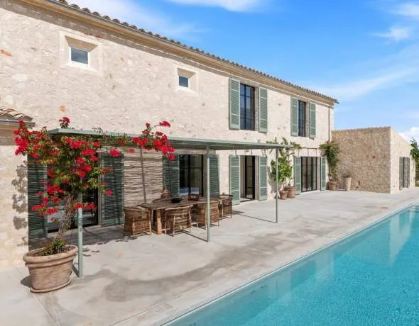 Esta hermosa finca se está construyendo cerca del encantador pueblo de Montuiri, empleando materiales de la más alta calidad. Está rodeada por un muro de piedra natural mallorquina y cuenta con un extenso viñedo, que ya ha comenzado a producir sus primeras botellas de vino. En la planta baja, se encuentra un amplio salón con chimenea y una cocina moderna de estilo mediterráneo. La propiedad ofrece 6 espaciosos dormitorios y 5 baños, además de un garaje con capacidad para varios coches. En el exterior, se disfruta de una gran zona con una piscina infinita.