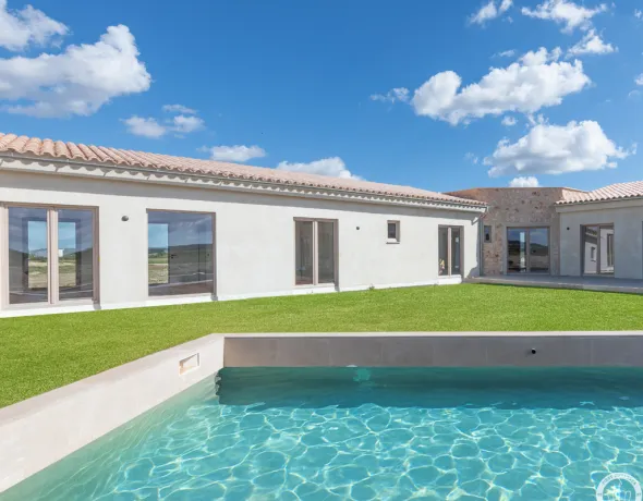 Esta exclusiva finca de nueva construcción cerca de Vilafranca de Bonany combina el confort moderno con una privacidad absoluta y unas impresionantes vistas panorámicas de 360 grados sobre el paisaje circundante y el encantador pueblo de Vilafranca.