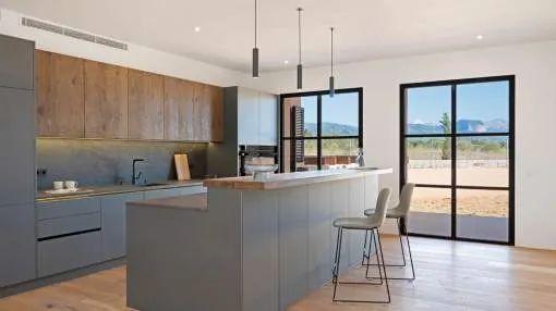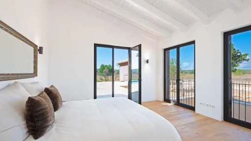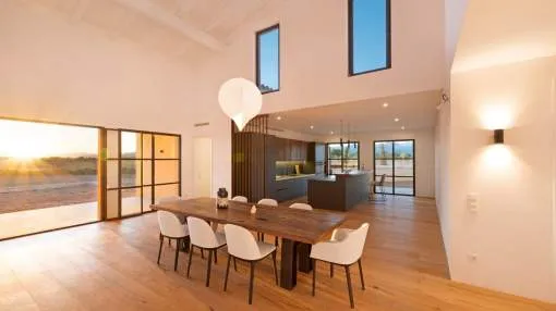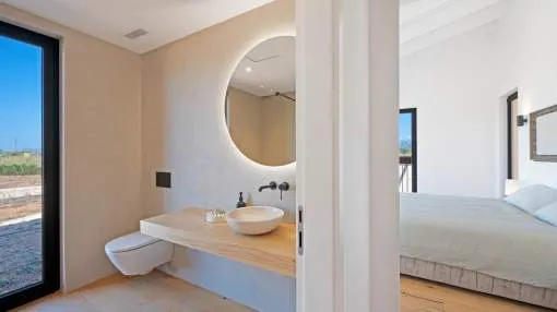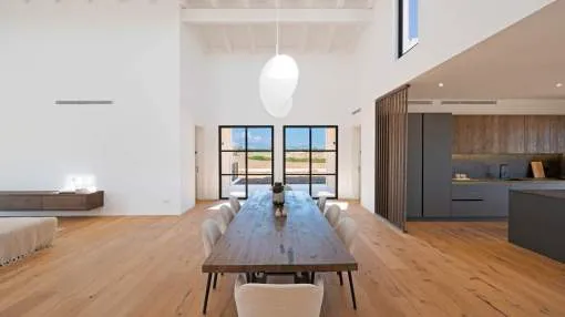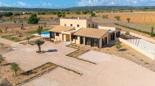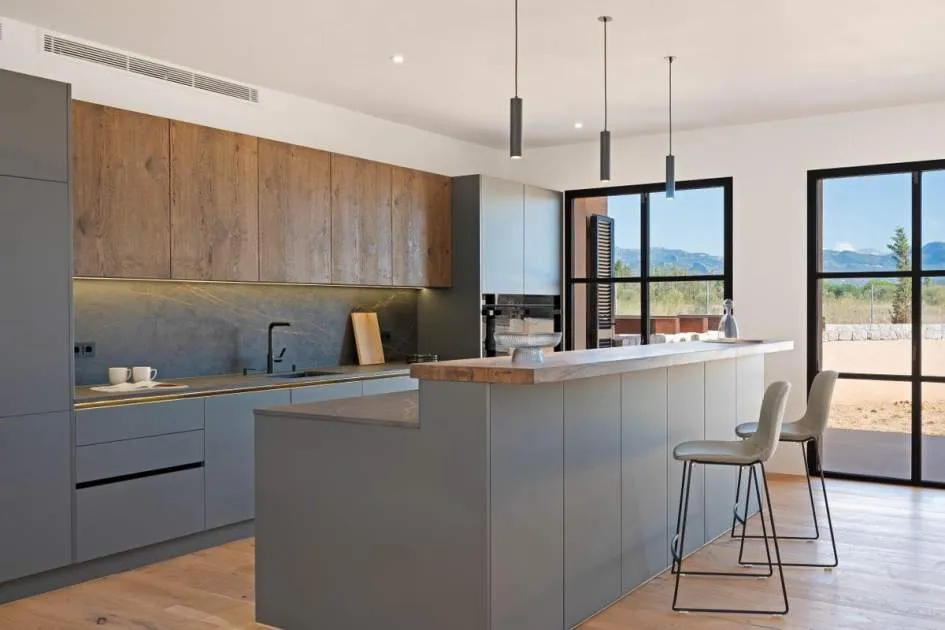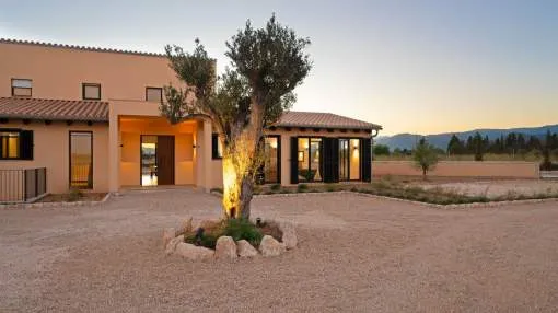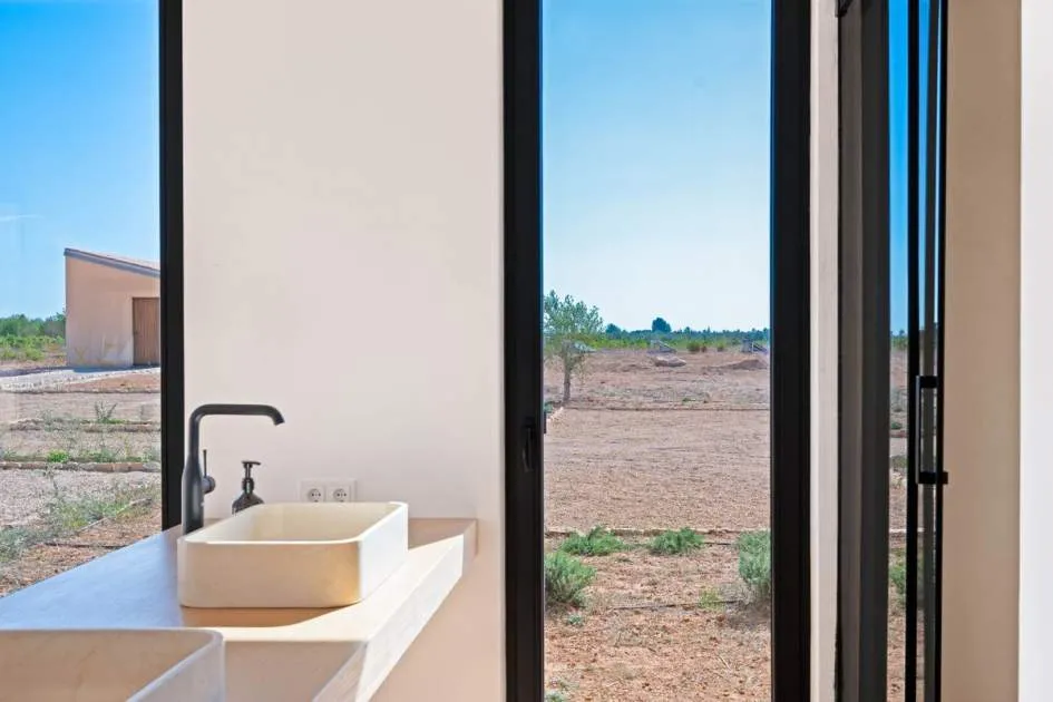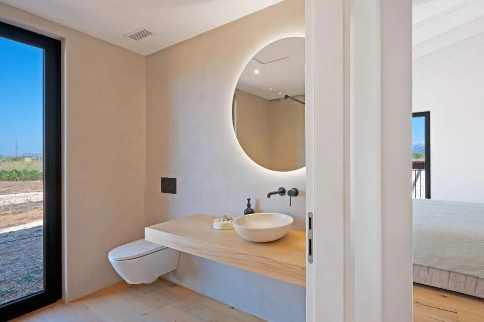 Esta propiedad mediterránea contemporánea se encuentra en el tranquilo campo de Mallorca, al pie de la Sierra de Tramuntana, declarada Patrimonio de la Humanidad por la UNESCO. Rodeada por la idílica región vinícola de Santa Maria y la localidad vecina de Binissalem, ha sido cuidadosamente diseñada para combinar armoniosamente el encanto rústico con el lujo moderno.