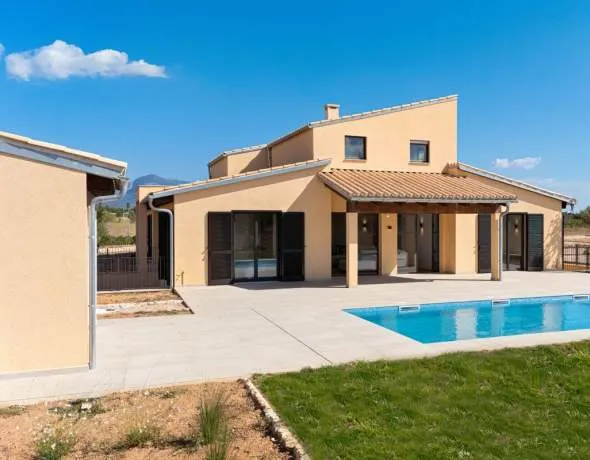 Esta propiedad mediterránea contemporánea se encuentra en el tranquilo campo de Mallorca, al pie de la Sierra de Tramuntana, declarada Patrimonio de la Humanidad por la UNESCO. Rodeada por la idílica región vinícola de Santa Maria y la localidad vecina de Binissalem, ha sido cuidadosamente diseñada para combinar armoniosamente el encanto rústico con el lujo moderno.