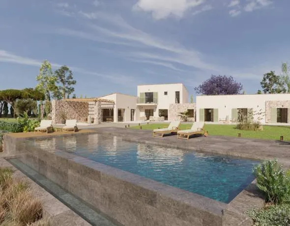 Esta magnífica finca de nueva construcción se encuentra actualmente en fase de edificación y está situada en una ubicación única y tranquila sobre una parcela de 25.000 m² cerca de Manacor. Ofrece total privacidad y calma absoluta, estando al mismo tiempo a solo unos 15 minutos en bicicleta del centro de la ciudad.