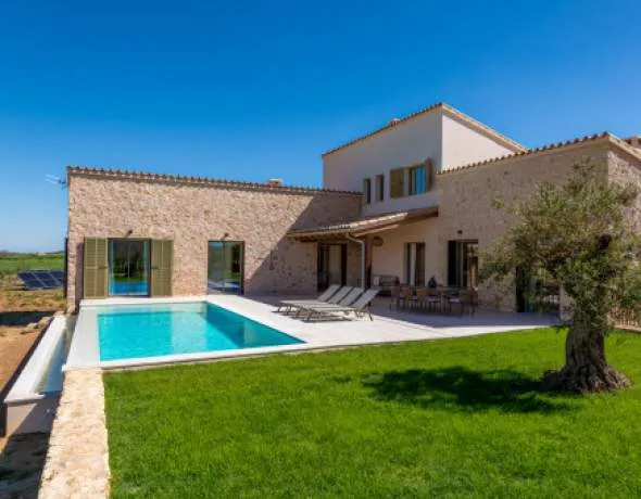 Finca de nueva construcción con vistas panorámicas a la Sierra de Tramuntana en Sineu