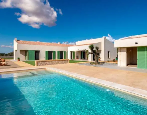 Esta moderna finca de nueva construcción se encuentra en el sureste de Mallorca, a solo 15 minutos de Campos, y ofrece privacidad absoluta en medio de un entorno natural intacto. Desde la propiedad se disfrutan impresionantes vistas panorámicas del paisaje, que se extienden hasta el famoso monte del monasterio de San Salvador. La zona es ideal para los amantes de la naturaleza, con numerosos senderos para caminar que atraviesan el entorno, incluyendo un poblado talayótico muy cercano.