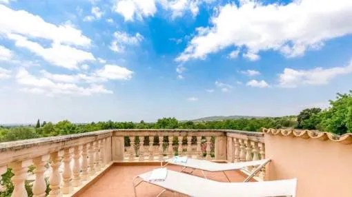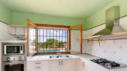 Descripción del inmueble: Finca con licencia de alquiler vacacional en vigor cerca de Llucmajor. La finca mallorquina está situada en un terreno de aprox. 21.000 metros cudrados, dividido en 2 parcelas. La finca de estilo rústico dispone de 3 dormitorios, 2 baños grandes, cocina, salón y trastero. La popular licencia de alquiler está diseñada para 6 personas. Llucmajor es un lugar ideal para alquileres turísticos. Gracias a la infraestructura durante todo el año, la finca se puede alquilar a huéspedes durante todo el año. Pero la finca también es ideal para uso privado, con su calefacción central de gasoil, aire acondicionado, piscina y la proximidad al pueblo con todas las comodidades, restaurantes y tiendas. Lugar & alrededores: Llucmajor es el término municipal más grande de Mallorca por superficie, y se sitúa en el sur de la isla. Su población es de 20.000 habitantes. La pequeña ciudad tiene 4 supermercados a su servicio, varios cafés y bares de tapas conocidos, y además un mercado tri-semanal de fruta y verdura, cual se estaciona en el nuevamente renovado centro del pueblo, completo con la plaza España y la segunda iglesia más grande de la isla. La pintoresca comunidad de la montaña de Randa, cual constituye el punto más elevado del centro de Mallorca, aguarda tres santuarios, y se ubica ligeramente al norte del pueblo. Llucmajor se ha desarrollado como un económico y popular lugar residencial, debido al fácil y rápido acceso a Palma por la nueva autovía. El Marriott Son Antem Resort y Spa, y los clubes náuticos cercanos convierten a Llucmajor en un interesante punto de partida y nudo en la red de accesibilidad-tranquilidad-ocio. La playa natural de Es Trenc, entre las más bellas de la isla y con similitud caribeña, se encuentra a solo 15 minutos en coche de Llucmajor.