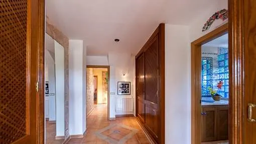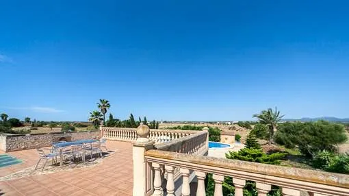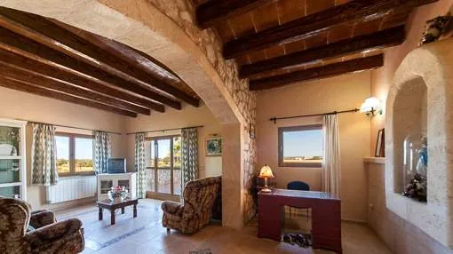 Descripción del inmueble: La finca revestida en piedra natural está situada en una zona muy tranquila en las afueras de Campos. En el terreno de 14.000 metros cuadrados, completamente cercado se encuentra esta finca de 811 metros cuadrados edificados. La vivienda consta de 3 pisos, en la planta baja encontramos el recibidor, salón, comedor, cocina, 2 dormitorios dobles y 2 cuartos de baño. El primer piso alberga 3 dormitorios con cuarto de baño en suite y vestidor, una amplia terraza en la que se puede disfrutar de unas vistas panorámicas y en el segundo piso hay 2 dormitorios, un cuarto de baño y un gimnasio, ideal para niños. Todas las ventanas son de PVC con doble acristalamiento. Aire acondicionado y una estufa proporcionan calor agradable en las estaciones frías. Además, se dispone de un sistema de alarma. El exterior destaca por su jardín de fácil mantenimiento con piscina, césped y plantas mediterráneas y con la posibilidad de seguir diseñándolo, sin ningún límite para la creatividad del nuevo propietario. Lugar & alrededores: Las maravillosas playas de arena de Es Trenc y Sa Rapitá forman parte del municipio de Campos, en el sur de la isla. Como sitio, Campos ya fue poblado en tiempos prehistóricos, los actuales muros del pueblo proceden de la medieval. Cinco grandes torres de defensa son testigos de los tiempos de los ataques de piratas. Con una superficie total de 148 km2 y una población de unas 8.300 personas Campos es uno de los mayores municipios de Mallorca.
