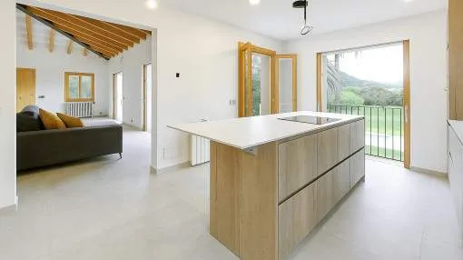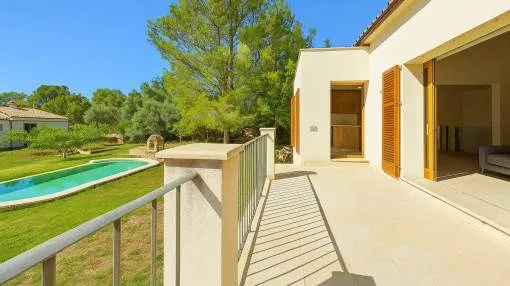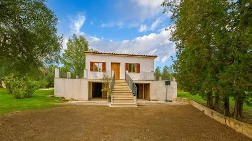 Descripción del inmueble: Esta encantadora finca está situada en una parcela de unos 4.380 metros cuadrados en las inmediaciones del casco antiguo de Pollença y combina un fácil acceso a la ciudad con un alto grado de privacidad. La casa principal de 2 plantas impresiona por su planta superior modernizada, la planta habitable propiamente dicha. Aquí hay 3 amplios dormitorios dobles, todos con armarios empotrados y acceso directo a la terraza, así como 3 baños, 2 de ellos en suite. El amplio salón se abre a la gran terraza con maravillosas vistas a la piscina y al Puig de Maria. Justo al lado se encuentra la luminosa y acogedora cocina, desde la que se accede al sótano. Este alberga 2 salas de máquinas, así como amplias zonas para uso individual - ya sea garaje, sala de ocio, gimnasio o zona chill-out, aquí no hay límites a la imaginación. El equipamiento incluye calefacción central de gasoil, aire acondicionado centralizado y doble acristalamiento, lo que garantiza un clima agradable durante todo el año. La finca dispone de electricidad y agua de pozo. La construcción es completamente legal y la licencia de alquiler vacacional para seis personas sigue siendo válida y no necesita ser renovada. Otro punto a destacar es la pequeña dependencia en el borde de la propiedad, que ya está equipada con conexiones de electricidad y agua y ofrece potencial de expansión. Esta propiedad es ideal para cualquier persona que aprecia la comodidad, la privacidad y la proximidad a Pollença. Lugar & alrededores: Pollensa, conocida entre los locales como la "segunda capital" de la isla, está rodeada por un carisma muy especial, incluso principesco. Situada en las estribaciones septentrionales de la Sierra de Tramuntana, esta romántica ciudad ofrece en la primera línea un panorama templado alrededor de la montaña Puig de María, que representa el monumento distintivo de esta región. Una muy diversa oferta cultural, sobre todo musical, complejos inmobiliarios de primera clase, el monte Calvario en pleno centro, el elegante y tranquilo barrio residencial La Font en la ladera de la montaña y el hermoso entorno rural de los valles colindantes Vall D’en March, Vall D’Colonya y Vall D’Aixartell, le confieren a este lugar único un encanto incomparable y ofrecen así una joya que, debido a su moderna infraestructura, está como creada para el inmueble vacacional perfecto. Pollensa es también el lugar ideal para los amantes del concepto de casa de campo mallorquina – hay muchas joyas atractivas por descubrir, las cuales han sido ya completamente renovadas o que todavía ofrecen suficiente espacio libre para el diseño personal.