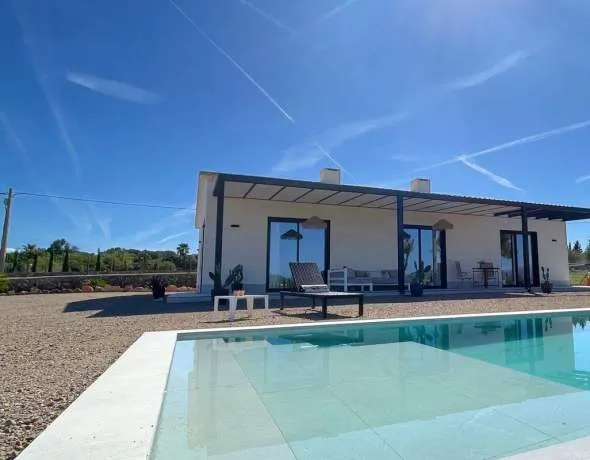 La casa de 150m2 construidos situada en una parcela de 16.000m2, ha sido cuidadosamente diseñada, con espacios amplios, luminosos y abiertos, y acabados contemporáneos que crean un ambiente cálido y acogedor.