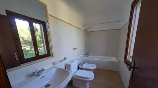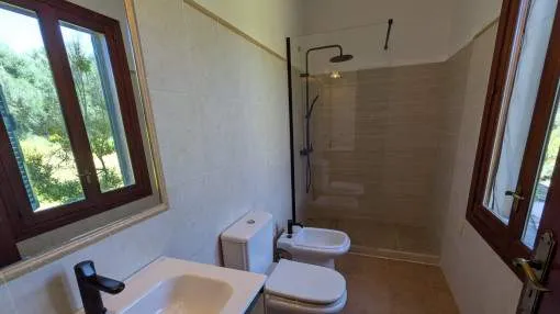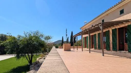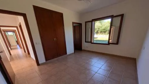 Descripción del inmueble: Esta encantadora finca de una sola planta ofrece un hogar idílico rodeado de naturaleza - perfecto para cualquiera que aprecie la paz, la privacidad y un estilo de vida mediterráneo. La propiedad con una superficie habitable de 121 metros cuadrados tiene 3 dormitorios, todos con armarios empotrados, así como 2 baños, uno de ellos en suite. La amplia sala de estar y comedor con estufa de pellets crea un ambiente acogedor y ofrece acceso directo a la gran terraza con maravillosas vistas sobre el campo circundante. La cocina contigua y un práctico lavadero completan la confortable distribución. En el exterior, una gran piscina con solarium invita a relajarse. La propiedad está totalmente vallada y rodeada de un jardín cuidadosamente ajardinado con olivos, naranjos y limoneros - un paraíso para los amantes de la naturaleza. Otras características incluyen su propio pozo y la red eléctrica, aire acondicionado y ventiladores. Una hermosa finca en una zona tranquila con fantásticas vistas - ideal para disfrutar de la vida del campo mallorquín al máximo. La finca se ofrece para alquiler a largo plazo. Lugar & alrededores: Sineu es geográficamente el pueblo más central de Mallorca y está situado en la región Es Plà. Una de las atracciones es la iglésia Nuestra Senyora de los Ángeles o el Convento de las Monjas. La atracción principal es el mercado semanal de ganado y artesanal. Sineu tiene 3000 habitantes.