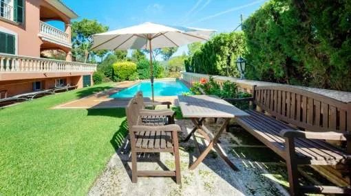 La casa forma parte de una pequeña comunidad residencial con solo dos edificios en la misma parcela. El jardín comunitario bien cuidado con una gran piscina se encuentra a solo 20 metros y está disponible para uso compartido.
