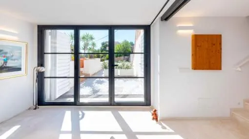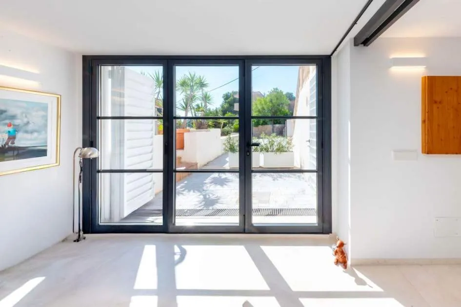 Esta elegante residencia en Puerto de Andratx combina el confort moderno con una de las ubicaciones portuarias más codiciadas de Mallorca. La propiedad ofrece una superficie construida de aprox. 234 m², distribuida en tres niveles: en la planta baja se encuentra un apartamento de invitados independiente con entrada propia, la planta intermedia alberga los dormitorios y en la planta superior se sitúan el salón-comedor con balcón y vistas al puerto. La parcela total tiene aprox. 1.712 m², de los cuales una parte corresponde a la vivienda.
