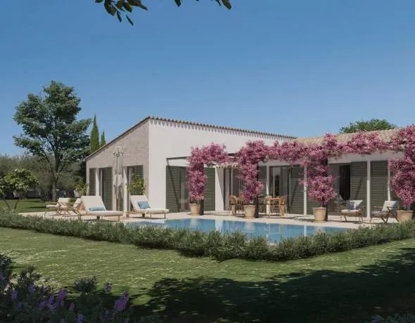 El terreno tiene una generosa superficie de 14 200 m², donde la casa principal ofrecerá aproximadamente 414 m² de superficie construida, cuidadosamente distribuidos en una sola planta para facilitar la vida cotidiana.