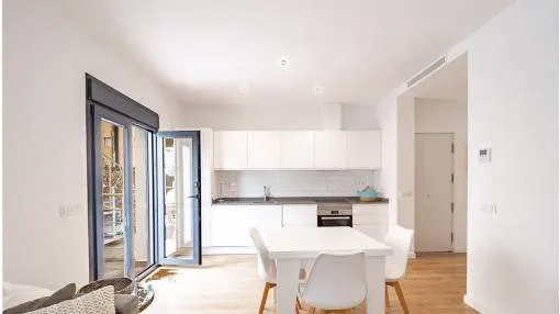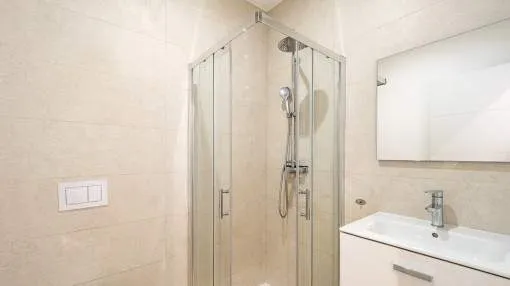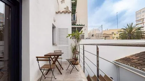 Details: This like-new penthouse, built in 2020, is located in a central yet quiet area in the heart of Palma and offers urban living with a pleasant level of privacy. The building comprises only four residential units, creating a relaxed and intimate living atmosphere. The true highlight of the property is the private roof terrace of approx. 67 sqm, offering ample space for sunbathing, relaxation and outdoor living. This outdoor area is complemented by a balcony of approx. 9 sqm on the living level, ideal for everyday use. The living area of approx. 76 sqm is distributed over 2 bedrooms and 2 bathrooms. A hot and cold air-conditioning system ensures comfortable living throughout the year. The penthouse is presented in a very well-maintained, like-new condition. Residents also benefit from a shared spa area with a heated indoor pool and a sauna, providing an added level of comfort and relaxation, even during the cooler months. The adjacent neighboring penthouse is also for sale and can be purchased together, offering attractive options for owner-occupiers, families or investors. A peaceful home in a vibrant city location, ideal for those who wish to live centrally while enjoying privacy and comfort. Location & surrounding area: Palma is Majorca’s first city home to 400,000 inhabitants. In addition to the historic architecture of the Old Town such as the Arab Baths or the buzzing entertainment district of ‘La Lonja’, Palma offers many beaches, marinas and the famous promenade Paseo Maritimo, stretching miles along the seafront accommodating the ample leisure activities that take place there. Here unlimited bars and restaurants are to be found, along with the new convention centre and City Theatre Auditorium. Throughout the year the city offers a wide cultural variety. Many shops can be found in the large shopping centre on the ring road ‘Via Cintura’. Also to be found in Palma is the only University of the Balearic Islands (UIB), the modern technology park ‘Parc Bit’, the largest concentration of international schools and the most modern hospitals (Clínica Planas and the new hospital Son Espases). For transport, the city is one of the most modern infrastructures in Europe providing services such as the international airport "San Joan," the brand new Metro and the fully-developed and perfectly maintained road network.