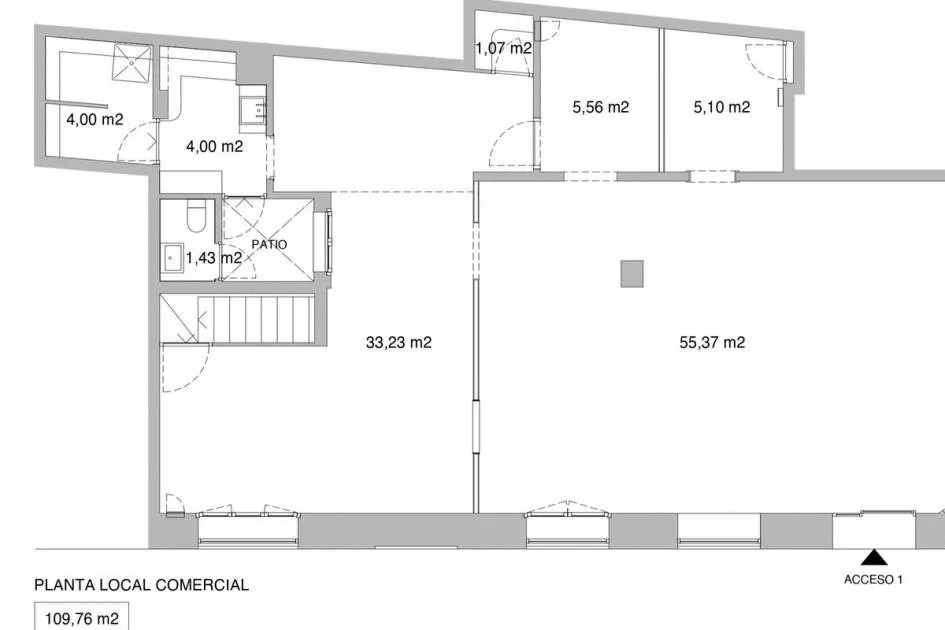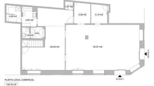 Propiedad comercial de 168.5m² (109,76m² local + 58,74m² sótano) en Llucmajor, ubicada en una esquina junto a Plaza Espanya, con calle peatonal muy concurrida, esquina con calle lateral de paso rodado, con entradas desde ambas calles. Apta para despachos como los de abogados, gestorías, inmobiliarias, agencias de seguros, tiendas de ropa, decoración, entre otros, así como para otros negocios no relacionados con hostelería, supermercados o tiendas de alimentación. El sótano de 58,74m² es ideal para almacenamiento o actividades complementarias al negocio.