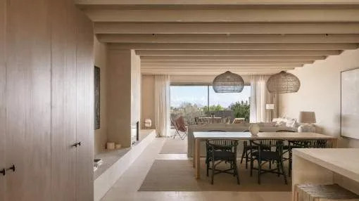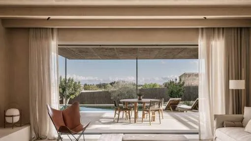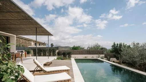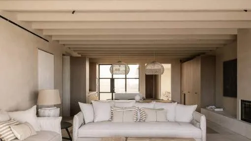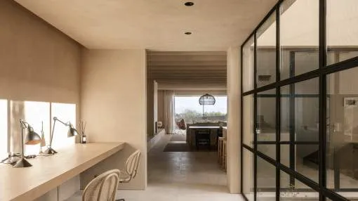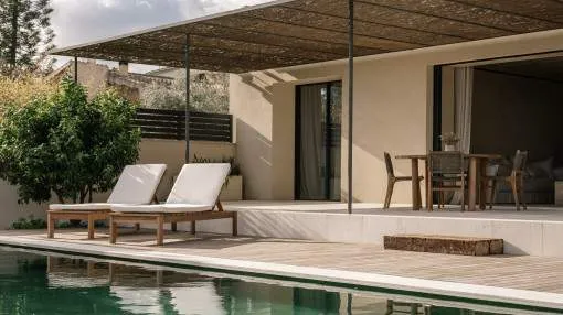 Descripción del inmueble: Esta lujosa casa de pueblo independiente de nueva construcción se extiende sobre 278 metros cuadrados de superficie construida en una parcela de 537 metros cuadrados. Con 3 dormitorios, 3 baños (2 en suite) y un aseo, esta propiedad ofrece lo último en confort y sofisticación. En la planta baja de 215 metros cuadrados hay un salón, comedor y cocina de planta abierta con acceso directo al jardín de estilo mediterráneo de 290 metros cuadrados, que cuenta con una refrescante piscina de 30 metros cuadrados con ducha y una cocina al aire libre. El generoso frente de ventanas y un atrio acristalado en la zona de estar crean un ambiente inundado de luz y conectan a la perfección las zonas interiores y exteriores. El dormitorio principal con vestidor y baño en suite, un aseo de invitados y un lavadero también se encuentran en esta planta. En la planta superior, de 64 metros cuadrados, hay otros 2 dormitorios y 2 cuartos de baño. Sin embargo, lo más destacado de esta casa es sin duda la impresionante terraza de 102 metros cuadrados en la azotea con una vista panorámica impresionante y sin obstáculos. Esta propiedad ha sido pensada hasta el más mínimo detalle y está equipada con calidades de primera clase. Otras características incluyen: Cocina con electrodomésticos de marca como Neff, Bora y Miele, calefacción por suelo radiante y aire acondicionado central por bomba de calor, techo de vigas vistas, suelos de piedra natural y madera de roble, armarios empotrados de alta calidad, ventanas de suelo a techo con doble acristalamiento, sistema de alarma, garaje para 2 coches, sistema de riego automático en el jardín, barbacoa exterior y mucho más. Póngase en contacto con nosotros para descubrir en persona esta excepcional casa de pueblo y déjese encantar por su encanto. Lugar & alrededores: Establiments es un popular pueblo mallorquín que sigue siendo muy auténtico y limita con la capital de la isla por el noreste. La mayoría de los edificios son viviendas unifamiliares. Debido a su antigua independencia, Establiments ofrece la infraestructura completa de un pueblo con escuelas, tiendas, bares y restaurantes. Además, las conexiones de transporte que tiene Establiments con el centro de la ciudad son perfectas. La mayoría de los edificios de la zona son viviendas unifamiliares.