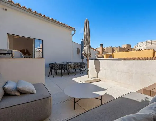 Este adosado completamente reformado se encuentra en una pequeña y tranquila calle lateral, no muy lejos del conocido Paseo Born y a solo dos minutos a pie de Jaume lll con sus boutiques y tiendas. El puerto deportivo de Palma, con el «Paseo Marítimo» enfrente, también se encuentra a pocos pasos. La confortable propiedad con ascensor está equipada con la última tecnología y materiales de primera clase y ofrece el máximo confort de vida en la mejor ubicación del casco antiguo de Palma. Otro punto destacado de la casa es la planta superior, que incluye una hermosa terraza con piscina para refrescarse en los calurosos días de verano y una cocina exterior con barbacoa. También cuenta con un salón con aire acondicionado y cocina americana, aseo de invitados y un amplio dormitorio de invitados con baño.
