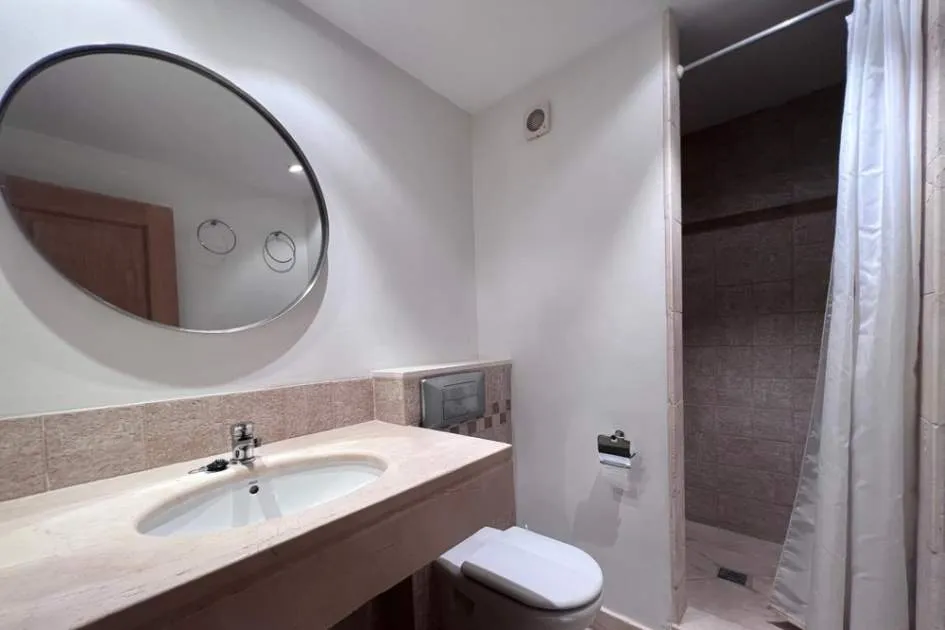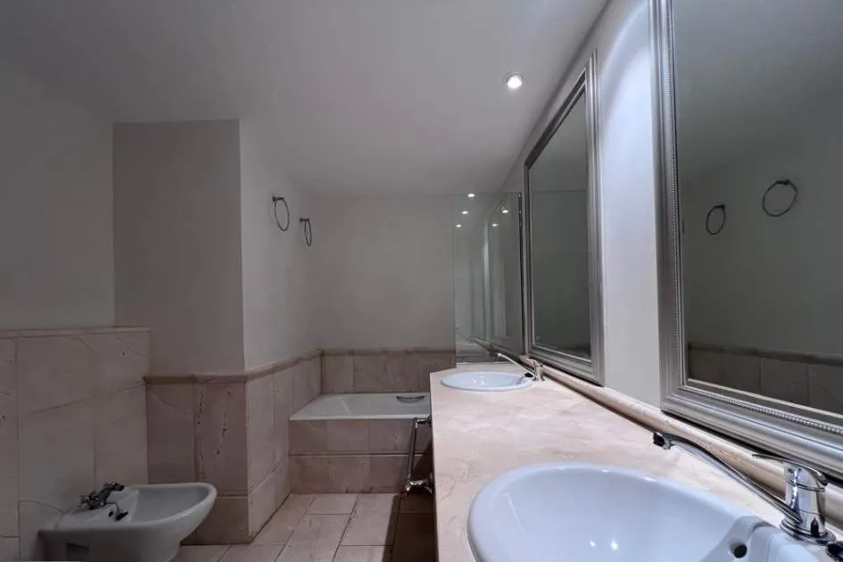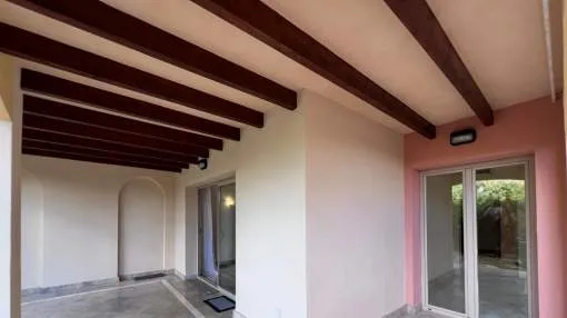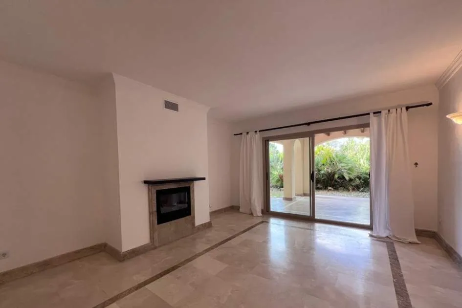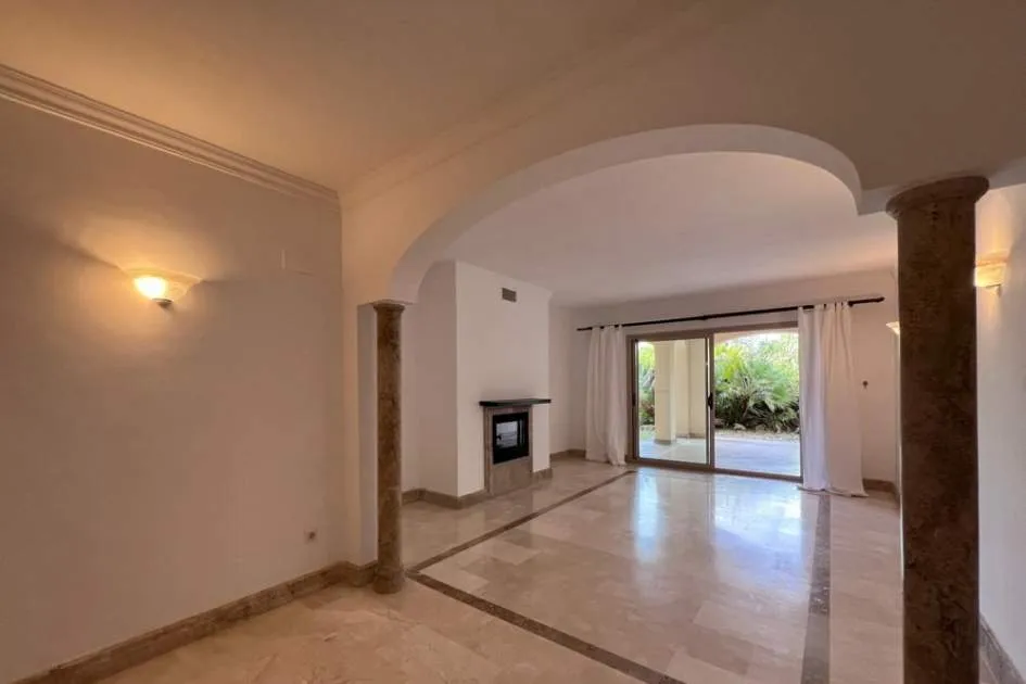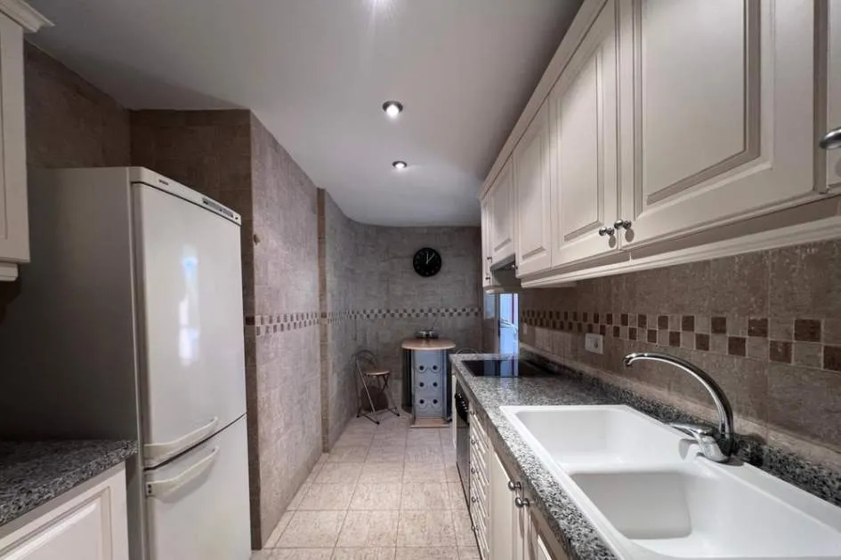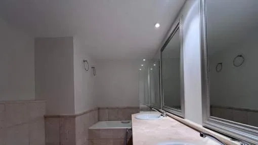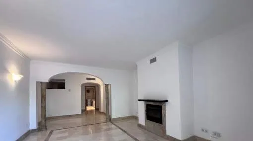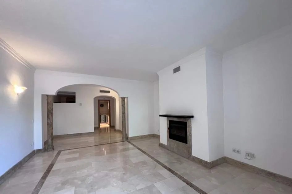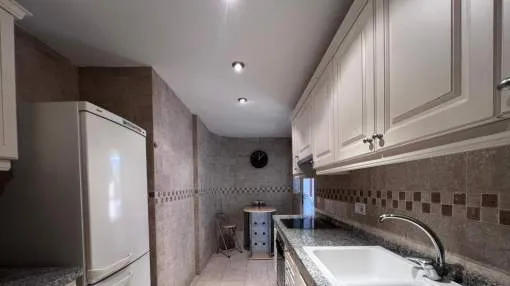 El apartamento con aprox. 115 m² de la superficie habitable dispone de un cómodo salón-comedor con chimenea, una cocina equipada con electrodomésticos Bosch y lavadero, 2 dormitorios y 2 baños. Desde el salón y el dormitorio principal hay salida a una terraza cubierta de aprox. 20 m² con mucha privacidad que conduce al jardín y piscina comunitaria. La terraza se divide en dos áreas: uno con mesa de comedor y el otro con 2 tumbonas para tomar el sol. El segundo dormitorio tiene su propia terraza pequeña que también conduce a la zona de piscina. Apartamento está decorado con muy buen gusto y equipado con sistema de aire acondicionado en todo el apartamento.