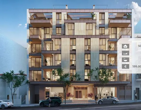 Este singular proyecto de nueva construcción consta de 25 pisos y áticos con diferentes acabados y está situado entre los dos barrios de Santa Catalina y Son Espanyolet. Desde la impresionante zona de entrada, puede tomar dos ascensores para subir a su vivienda o bajar al aparcamiento con aparca bicicletas y trasteros. Los apartamentos modernos de 1-3 dormitorios y 11-2 baños disponen de una superficie habitable entre 50 m² y 130 y cuentan con un amplio salón-comedor con una cocina abierta y totalmente equipada. Grandes ventanales proporcionan mucha luz natural. En cada vivienda, puede elegir entre 3 acabados interiores diferentes para personalizar aún más su estilo preferido. Por ejemplo, Light: el estilo minimalista con tonos claros, ambiente mediterráneo, azulejos de porcelana y cocinas blancas. Shine: el estilo acogedor con suelos de madera de roble. Glam: diseño interior al más alto nivel con suelos de mármol oscuro. Un oasis que combina lujo y diseño de forma única.
