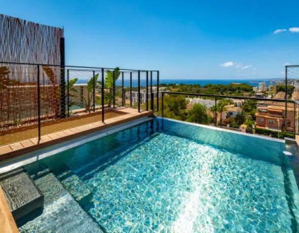 Lujoso y exclusivo ático dúplex de 2 dormitorios con vistas al mar y piscina en Bonanova