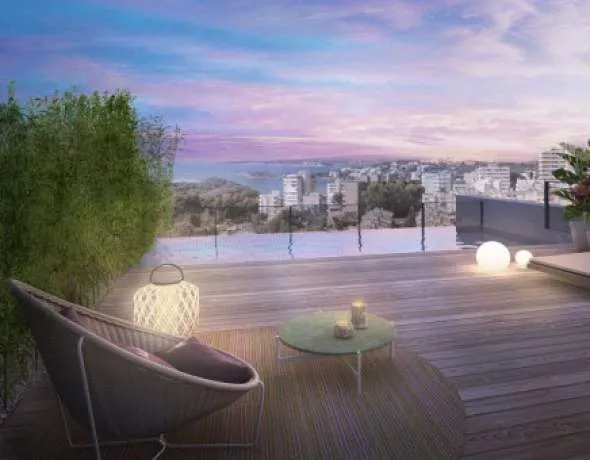 'Parallel East & West' se presenta con 2 edificios innovadores, cada uno con 6 pisos de lujo, que opcionalmente tienen una piscina privada, su propio jardín o una terraza protegida en la azotea con vistas panorámicas sobre la bahía de Palma, Cala Major e Illetas.