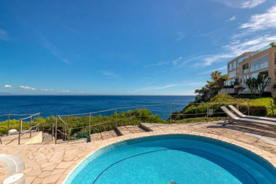 Descripción del inmueble: Este apartamento ofrece unas vistas despejadas al mar desde su terraza de aproximadamente 30 m². Se encuentra en una comunidad bien cuidada, en primera línea de mar, situada en una tranquila zona residencial de Cala Vinyas, a poca distancia de la popular playa y de varios restaurantes. La piscina comunitaria de agua salada está ubicada justo sobre los acantilados y ofrece unas vistas espectaculares al mar. Desde allí se accede a una entrada privada al mar que lleva a una pequeña cala rocosa. La superficie habitable de 100 metros cuadrados se distribuye en un amplio y luminoso salón-comedor con cocina semiabierta, 2 dormitorios y 2 baños. El apartamento incluye una plaza de aparcamiento cubierta, situada justo al lado de la entrada principal. La vivienda se encuentra actualmente en proceso de renovación: los baños se renovarán parcialmente y la cocina será completamente renovada. Estará disponible para alquiler a largo plazo a partir del 15.12.2025. Los únicos gastos adicionales son los de electricidad. No se permiten mascotas, especialmente perros, ni fumar dentro del apartamento. Lugar & alrededores: La urbanización Cala Vinyas se encuentra en medio de un bosque de pinos con caminos tranquilos y pequeñas calas. Gracias a una buena infraestructura y la cercanía a la capital Palma (aprox. 15 km) Cala Vinyas esta ofreciendo un idilio rural en una zona vivaracha del suroeste. La cala de Cala Vinyas es una buena alternativa para la gente, quienes prefieren las calas pequeñas en vez de playas grandes y ruidosas. El casino cercano con su fantástico show ofrece una variedad bienvenida a la calma paradisíaca. Una ubicación interesante gracias a la buena comunicación a la autopista y a los puertos deportivos de Portals y Adriano. Los campos de golf de Poniente y de Santa Ponsa están a solo 10 minutos en coche.
