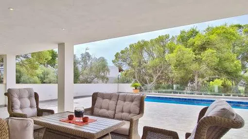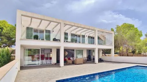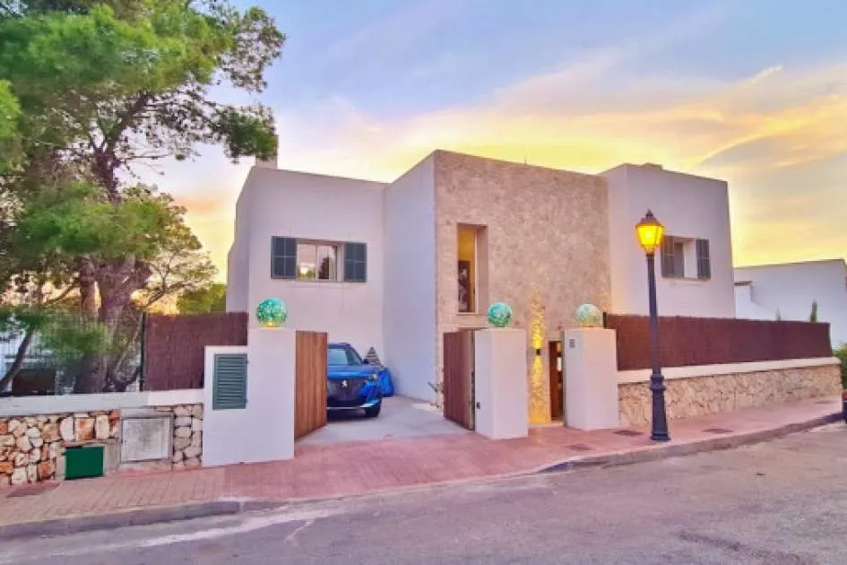 Details: This elegant luxury villa, built in 2021, impresses with its excellent location, modern design, and well-thought-out layout. Just 200 meters from the marina and only a 5-minute walk to the nearest beach, it offers the perfect setting for both permanent living and exclusive holiday stays. The property features approximately 210 m² of living space on a plot of around 555 m², with spacious and light-filled interiors. The heart of the home is the open-plan living area, seamlessly combining the living room, dining area, and a modern kitchen—ideal for everyday living and entertaining. The villa offers 4 bedrooms, including a stylish master bedroom with en-suite bathroom, as well as two additional fully equipped bathrooms. High-quality materials and contemporary design create a sophisticated yet comfortable atmosphere. Highlights include a spacious rooftop terrace with multiple uses, a private pool, and a well-designed lighting concept both indoors and outdoors. For maximum comfort, the property is equipped with air conditioning, underfloor heating, a smart home system, and an alarm system. This villa is ideal for owner-occupiers—whether as a luxury holiday home, for boat owners due to its proximity to the marina, or as a permanent residence in an exclusive setting. A property that perfectly combines modern living, prime location, and lifestyle quality. Returns from holiday lettings: For initial orientation you can use the “Porta Holiday Returns Calculator” without obligation to calculate your potential returns from holiday letting. NB: Due to the current legal situation it is possible that in certain municipalities renting restrictions may apply, or new touristic licences may not be granted. Your Porta Mallorquina real estate consultant will be pleased to advise you whether the property you have chosen is affected. Go to Returns Calculator. Location & surrounding area: Cala d’Or, the golden bay, is located in the southeast of Mallorca, right by the sea. The white houses of this resort specialized on the needs of international guests are outstanding from the slightly hilly and green backcountry. The legendary marina attracts lovers of recreational crafts from all over the world. Right by the marina, there is a beautiful boulevard with a large selection of good restaurants and bars, ideal for strolling. For those wanting to be active, the beautiful golf course of Vall d’Or, several small bays as Cala Esmeralda and a versatile range of water sports possibilities offer numerous alternatives for the best time of the year.