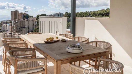 Nueva Construcción en Cala Major: Terraza Privada en la Azotea con Plunge Pool, BBQ, Ducha Exterior y Vistas Parciales al Mar