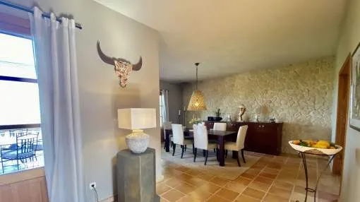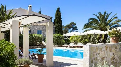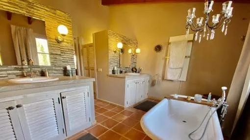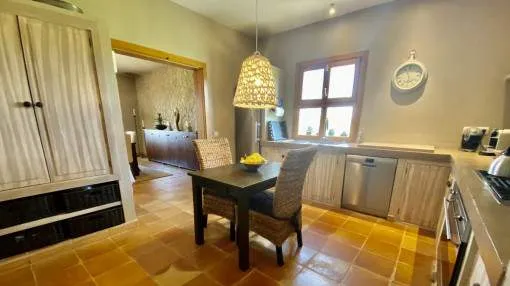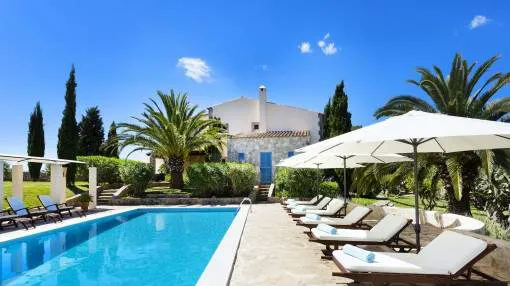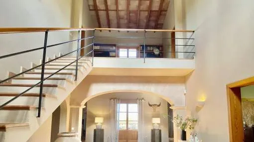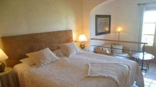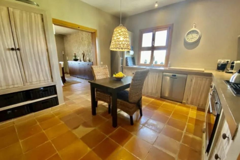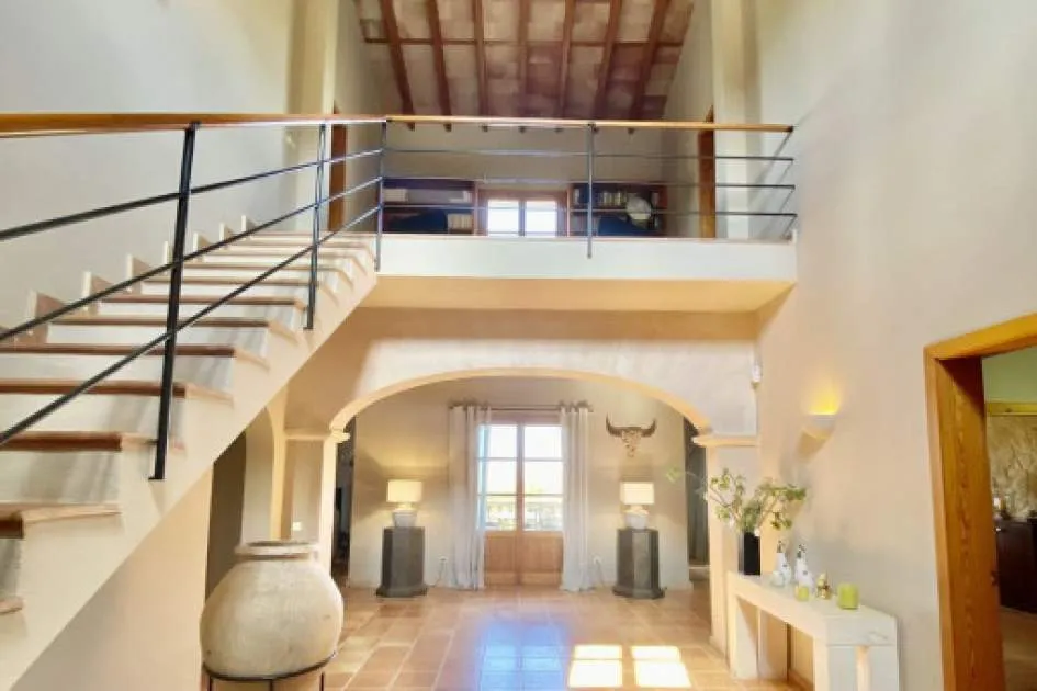 Descripción del inmueble: Esta finca está a pocos minutos de Petra y ofrece una preciosa vista a la Sierra de Tramontana. La propiedad cuenta con 2 casas totalmente equipadas e independientes. Una de estas casas tiene una licencia de alquiler para 12 personas. También ofrece un jardín bien cuidado con numerosos árboles frutales, olivos y un pequeño viñedo privado. La casa principal dispone de 4 dormitorios, uno de ellos con baño en suite, una cocina y un amplio salón-comedor con acceso a la terraza y vistas al jardín y a las montañas. La segunda casa tiene 6 dormitorios, todos con baño en suite, una gran sala de estar, una cocina y un comedor muy amplio. También hay una dependencia, ideal para celebrar eventos o reuniones, varios almacenes, una gran piscina, una pista de petanca y una zona de barbacoa con espacio para unas 50 personas. Otras características son: calefacción por suelo radiante, radiadores, chimenea, pozo privado y energía solar. Esta propiedad es ideal para personas que quieren vivir en Mallorca y tener su propio negocio. Pero también es perfecta para varias generaciones de una familia. Lugar & alrededores: Petra está situado en el norte de la isla, a unos 20 kilómetros desde la bahía de Alcúdia. Cuenta con unos 2.500 habitantes en total. Es famoso por sus maravillosas viñas y bodegas y por su patrón, fray Junípero Serra (1713 - 1784), que evangelizó gran parte de California, E.E.U.U. y fundó las ciudades de San Francisco y Los Ángeles, entre otros.