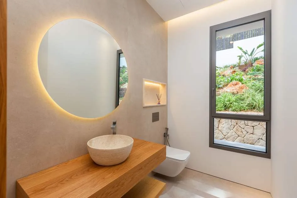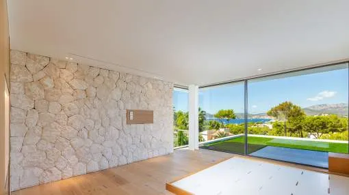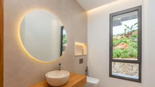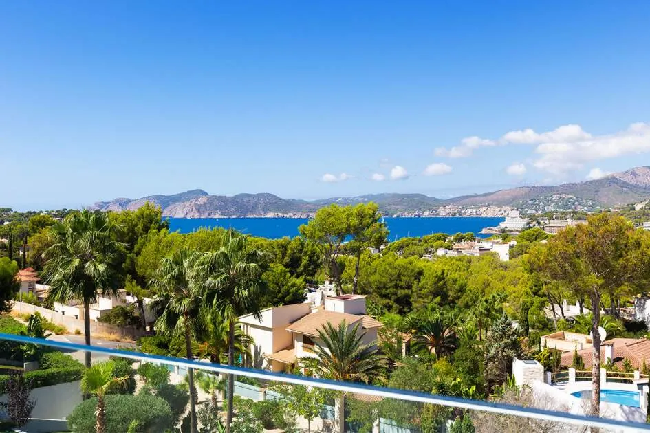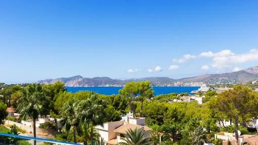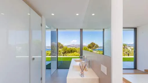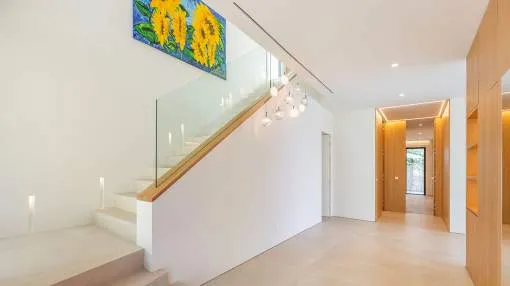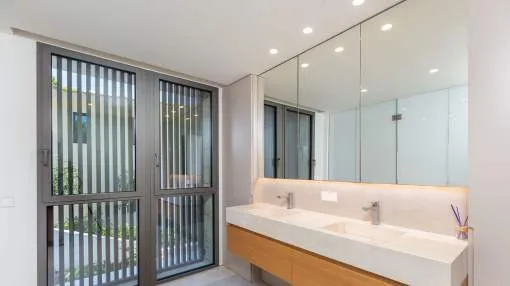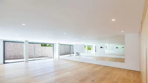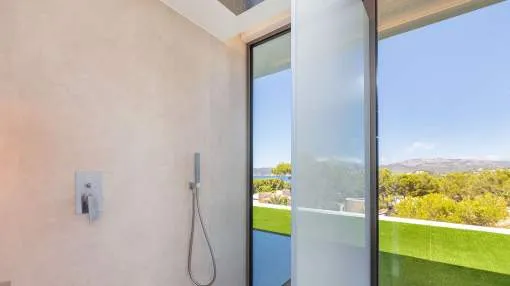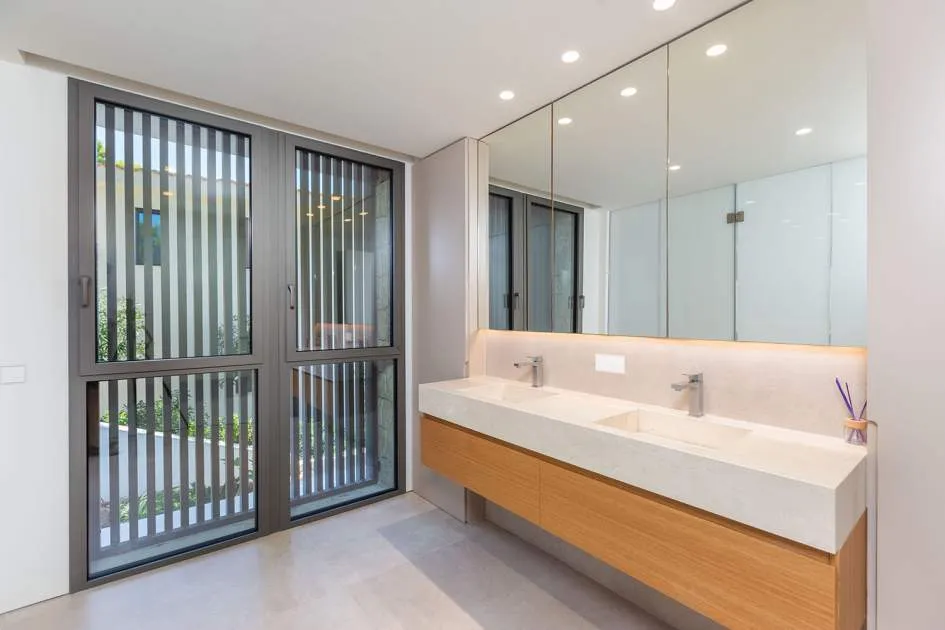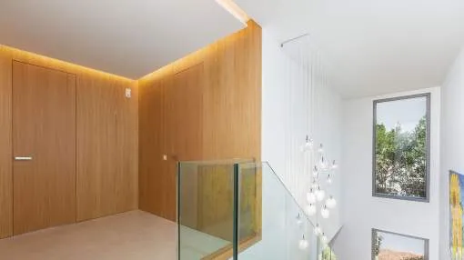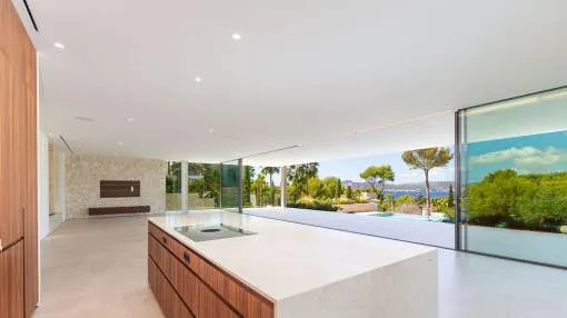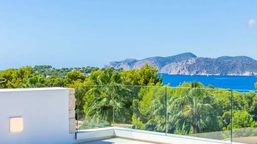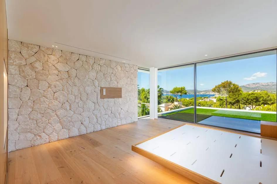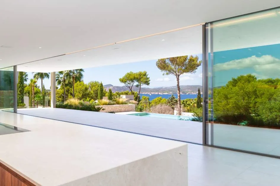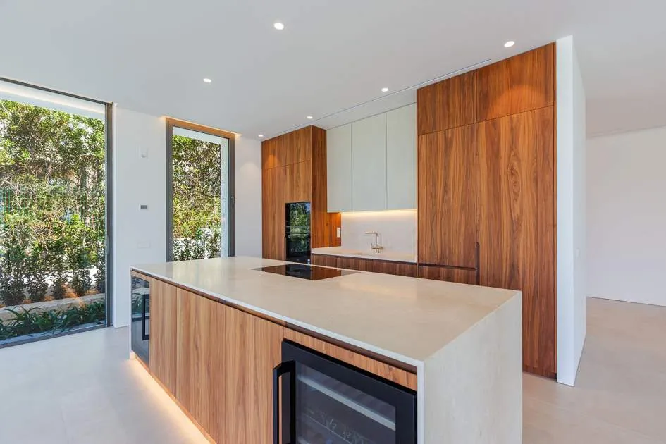 Situada en una de las urbanizaciones más exclusivas de Santa Ponsa, esta elegante villa de nueva construcción se presenta como un moderno refugio con absoluta privacidad. La tranquila zona residencial limita directamente con una extensa área protegida, accesible a través de una puerta de jardín autorizada. Al mismo tiempo, la ubicación convence por su cercanía al centro: tres prestigiosos campos de golf y varios puertos deportivos se encuentran en las inmediaciones. La amplia playa de arena de Santa Ponsa, calas idílicas, instalaciones deportivas y de ocio, así como numerosas opciones de compras y restauración, están a pocos minutos en coche.