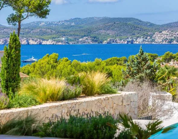 Situada en una de las urbanizaciones más exclusivas de Santa Ponsa, esta elegante villa de nueva construcción se presenta como un moderno refugio con absoluta privacidad. La tranquila zona residencial limita directamente con una extensa área protegida, accesible a través de una puerta de jardín autorizada. Al mismo tiempo, la ubicación convence por su cercanía al centro: tres prestigiosos campos de golf y varios puertos deportivos se encuentran en las inmediaciones. La amplia playa de arena de Santa Ponsa, calas idílicas, instalaciones deportivas y de ocio, así como numerosas opciones de compras y restauración, están a pocos minutos en coche.