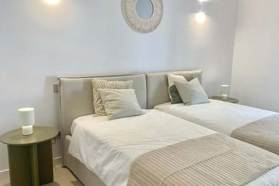 La propiedad, de diseño moderno y acabados de primer nivel, se distribuye en tres plantas y ofrece 5 amplias habitaciones con armarios empotrados y 4 baños, todos ellos con luz natural. El salón, de gran amplitud y luminosidad, se abre a una cocina de vanguardia con “cocina invisible” y una espaciosa despensa, que a su vez tiene un gran ventanal con salida al solárium y piscina. La vivienda se entrega completamente amueblada y equipada con electrodomésticos de alta gama: horno de 90 cm, microondas, lavadora, secadora, nevera/congelador, lavavajillas, cafetera Nespresso y televisión LG de 77 pulgadas, entre otros.