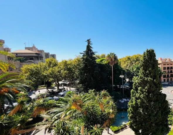 Se alquila para larga temporada esta vivienda situada en una de las zonas más exclusivas de Palma, junto a la Plaza de la Reina, la Catedral y el Palacio de L'Almudaina. Este apartamento destaca por sus amplios espacios, la gran luminosidad y unas vistas privilegiadas a jardínes.