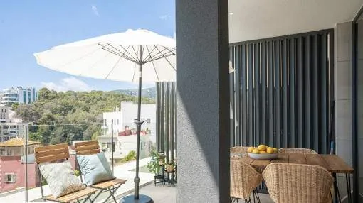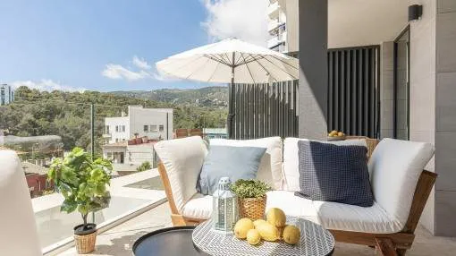 Modern apartment with a large terrace in an exclusive residential complex with rooftop pool and sea views in Cala Major
