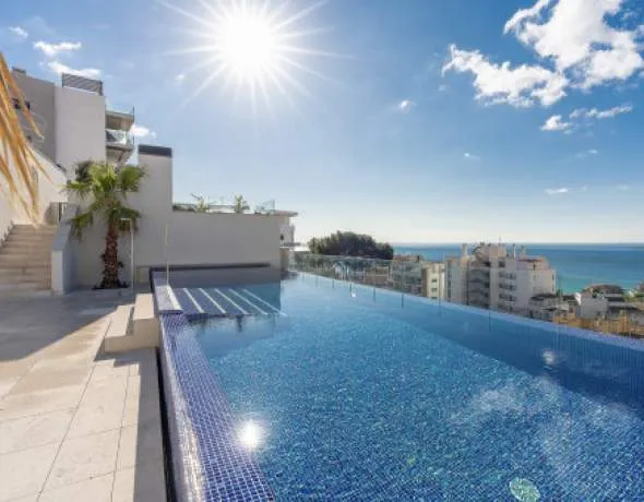 Modern apartment with a large terrace in an exclusive residential complex with rooftop pool and sea views in Cala Major