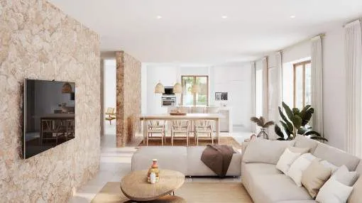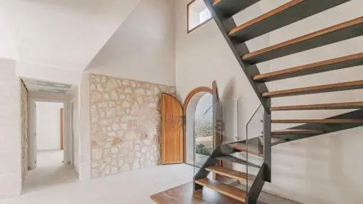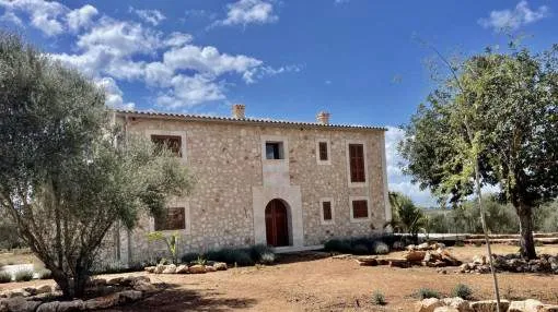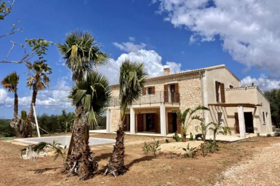 Details: A newly built finca for sale near Santanyí, combining modern living with Mediterranean charm. The property sits on a plot of approximately 22,500 m² and offers great privacy within a typical Mallorcan landscape. The house was built by a renowned construction company to high quality standards and has been ready for occupancy since 2024. The living area of approximately 270 m² is distributed over 2 floors plus a basement level of around 40 m². The ground floor features a spacious living and dining area with a modern, fully equipped kitchen, utility and technical rooms, as well as a bedroom with en-suite bathroom. From the living area, there is direct access to the surrounding terraces overlooking the garden and the large pool with relaxation area. The upper floor offers 3 additional bedrooms, each with its own bathroom, 2 of them also featuring bathtubs and private dressing areas. Two bedrooms have access to a terrace with wide views over the surrounding landscape and olive groves. Features include underfloor heating powered by a biomass system, high-quality air conditioning, double glazing, utility room, technical room, a fully equipped kitchen, and a spacious pool area. Returns from holiday lettings: For initial orientation you can use the “Porta Holiday Returns Calculator” without obligation to calculate your potential returns from holiday letting. NB: Due to the current legal situation it is possible that in certain municipalities renting restrictions may apply, or new touristic licences may not be granted. Your Porta Mallorquina real estate consultant will be pleased to advise you whether the property you have chosen is affected. Go to Returns Calculator. Location & surrounding area: The finca is located in a quiet rural setting near Santanyí in the sought-after southeast of Mallorca. The location offers a high level of privacy while still providing easy access to the lively town center with its restaurants, cafés, boutiques, and popular weekly market. Numerous beautiful coves and beaches can be reached within a few minutes by car, while the surrounding landscape of fields, almond, and olive trees conveys authentic Mallorcan charm. Despite the peaceful surroundings, shopping facilities, medical services, and good transport connections are easily accessible. Palma and the airport can be reached in approximately 40–45 minutes. The location therefore combines peace, nature, and privacy with proximity to one of the island’s most charming towns, making it ideal both as a holiday home and for permanent living.