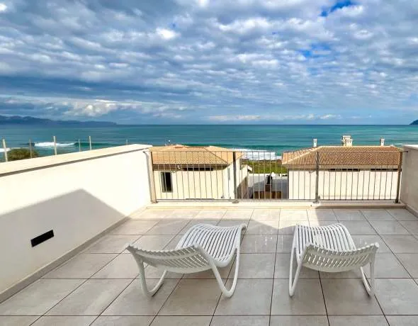 Esta propiedad recién construida se encuentra en segunda línea del mar, en Son Serra de Marina – un refugio de calma y tranquilidad. La casa semiadosada, distribuida en 3 plantas (incluyendo la azotea con terraza privada), está construida con materiales de calidad y un diseño contemporáneo que garantiza comodidad y amplitud.
