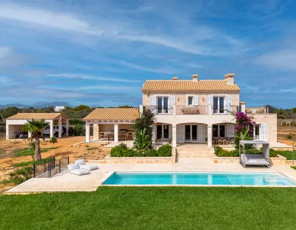 Esta hermosa villa de piedra natural, que combina armoniosamente el encanto mallorquín con un estilo moderno y limpio, se encuentra cerca de Santanyí. El encantador pueblo pesquero de Cala Figuera, con su puerto y restaurantes, se encuentra a pocos minutos. El diseño de las zonas exteriores y el mobiliario interior combinan tradición, elegancia y confort en toda la propiedad para crear un ambiente sofisticado a la vez que acogedor. La cuidada selección de piezas individuales hechas a mano y los materiales y muebles nobles, así como los colores de buen gusto, hacen de esta villa algo muy especial.