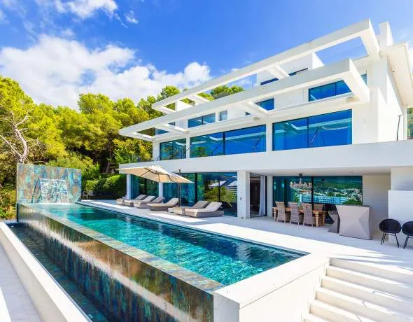 Esta exclusiva villa se encuentra en la pintoresca región costera de Camp de Mar, directamente en primera línea de mar. El entorno cautiva por su belleza natural. Camp de Mar ofrece un ambiente tranquilo y sofisticado, por lo que es ideal para todos aquellos que buscan relajación y privacidad. La localidad es conocida por su encantadora playa de arena, enmarcada por una pintoresca bahía, así como por el prestigioso campo de golf “Golf de Andratx”, que se encuentra en las inmediaciones.