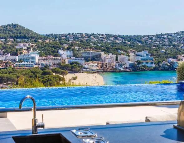 Esta magnífica villa se encuentra en una exclusiva zona de Santa Ponsa y destaca por su diseño contemporáneo, amplios espacios y espectaculares vistas panorámicas a la bahía. Ubicada en una parcela orientada al sur, con un jardín cuidadosamente diseñado, ofrece total privacidad y un estilo de vida privilegiado en una de las zonas más cotizadas del suroeste de Mallorca.
