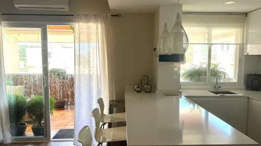 Este apartamento completamente renovado y amueblado en Andratx se encuentra en un pequeño edificio de solo seis viviendas, a poca distancia a pie de restaurantes, tiendas y cafeterías.