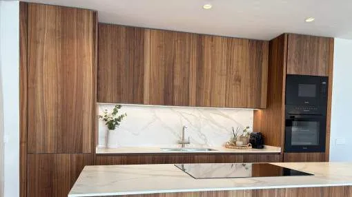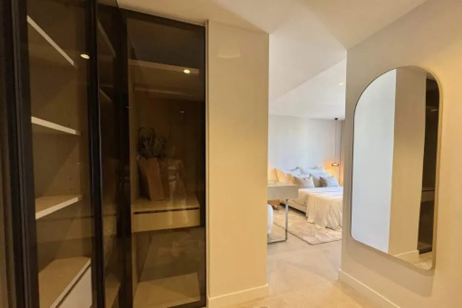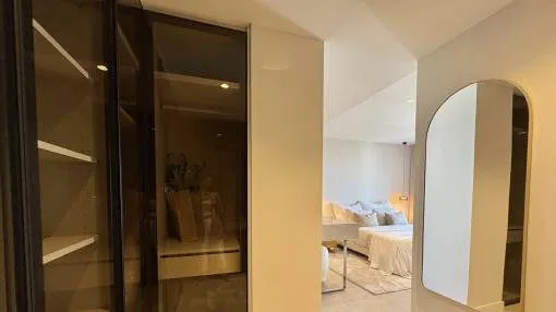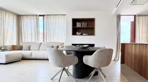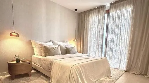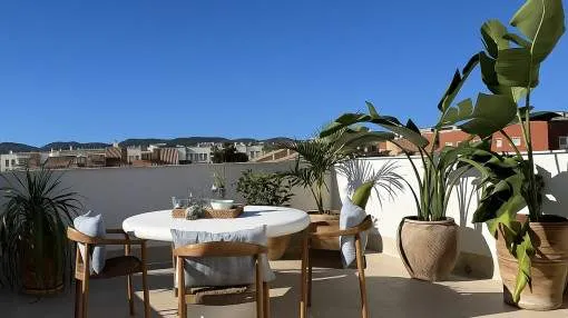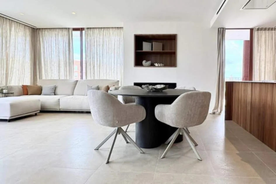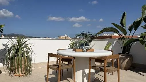 Descripción del inmueble: Este lujoso ático con una superficie construida interna de 123 metros cuadrados dispone de 3 dormitorios, 2 baños, uno de ellos en suite, un aseo de invitados y un amplio salón/comedor con cocina americana. Lo más destacado de este ático son las amplias zonas exteriores. Ofrece una terraza de 58 metros cuadrados en el nivel de vida más una terraza privada de 107 metros cuadrados, con espectaculares vistas panorámicas de Palma y el mar más allá. La propiedad también incluye 2 plazas de aparcamiento subterráneo privado, una piscina comunitaria, un gimnasio y la fantástica zona verde junto a la piscina para uso comunitario, que completan esta oferta única. Una de las muchas características especiales del proyecto es el diseño único de la fachada exterior. Un sistema especial de plantación en la fachada y un sistema integrado de calefacción y refrigeración alimentado por energías renovables reducen significativamente el consumo y mejoran considerablemente la eficiencia energética. La propiedad está a punto de terminarse y ya puede visitarse. Otras unidades de este proyecto: ReferenciaConstruidoDormitoriosPisoPrecio117870288 m²34€ 1.326.000,- 117870E266 m²34€ 1.595.000,- Lugar & alrededores: Palma es la ciudad más grande de Mallorca con 400.000 habitantes. La ciudad vieja tiene impresionante arquitectura histórica como los Baños Árabes o el famoso distrito de entretenimiento de 'La Lonja'. También ofrece numerosas playas, puertos deportivos y el famoso Paseo Marítimo, que se extiende kilómetros a lo largo del mar permitiendo una multitud de actividades. Aquí se encuentran bares y restaurantes, el nuevo centro de convenciones, y el teatro de la ciudad- el Auditorio. Durante todo el año la ciudad ofrece una amplia variedad cultural. Muchas de las tiendas se pueden encontrar en el gran centro comercial en la carretera de circunvalación "Vía Cintura". También se encuentran en Palma la única Universidad de las Islas Baleares (UIB), el parque de la tecnología moderna 'Parc Bit', la mayor concentración de escuelas internacionales y los hospitales más modernos (Clínica Planas y el nuevo hospital Son Espases). Para el transporte, la ciudad es una de las infraestructuras más modernas en Europa que ofrece el aeropuerto internacional "Son Joan", el nuevo metro y la red de carreteras que está completamente desarrollada y perfectamente mantenida.